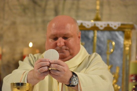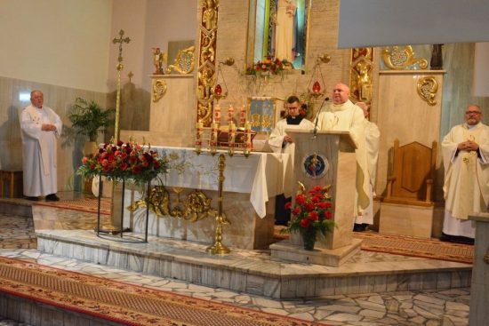 O godz. 18:30 rozpoczęła się Msza św. w intencji ks. Jubilata, w której dziękowano Panu Bogu za wszystkie otrzymane łaski w minionym czasie posługi kapłańskiej i modlono się o potrzebne łaski, obfite Boże Błogosławieństwo, zdrowie i opiekę Matki Bożej na dalsze lata kapłaństwa. Mszy św. przewodniczył Jubilat ks. prof. Dariusz Śmierzchalski-Wachocz w koncelebrze z Dziekanem ks. kan. Zdzisławem Przybyszem, Proboszczem ks. kan. Jerzym Kordiakiem, Wikariuszem ks. Jakubem Świątkiem, ks. prof.  Janem Radkiewiczem, wykładowcą teologii dogmatycznej w Wyższym Seminarium Duchownym w Gościkowie – Paradyżu i w Instytucie Filozoficzno – Teologicznym im. Edyty Stein w Zielonej Górze, a także naszym byłym