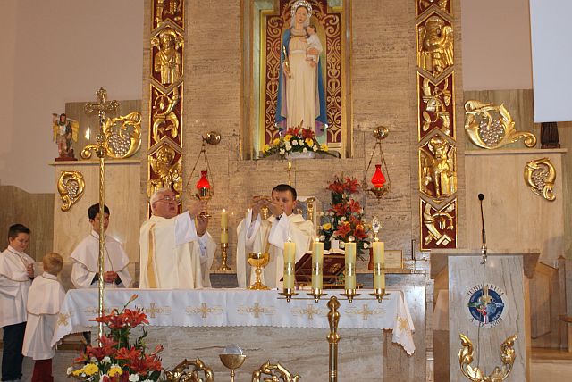 Na początku Mszy św. dzieci, młodzież, ministranci i przedstawiciele grup parafianych złożyli gorące podziękowanie za pracę i życzyli obfitości łask Bożych i Macierzyńskiej opieki Matki Bożej na dalsze lata w służbie Bożej.