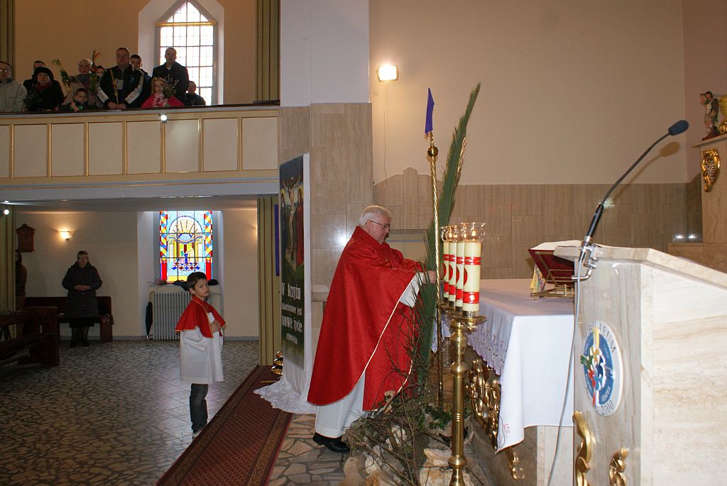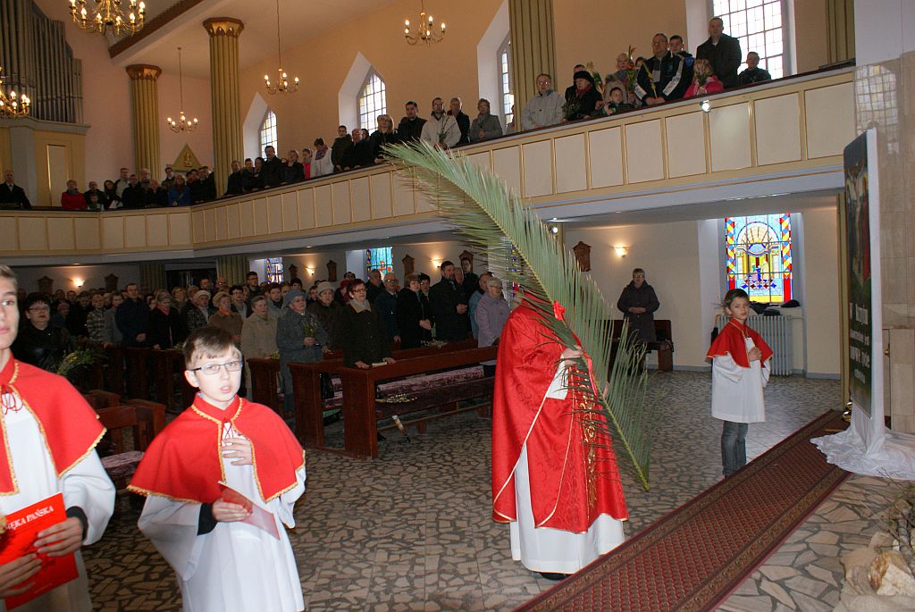 29.03.2015r. w Niedzielę Palmową czyli w Niedzielę Męki Pańskiej podczas wszystkich Mszy św. kapłani święcili przyniesione przez wiernych palmy.