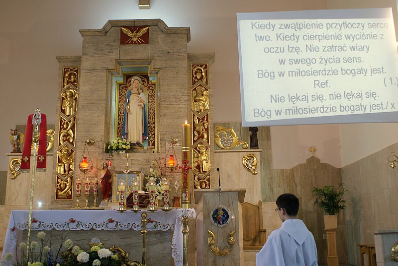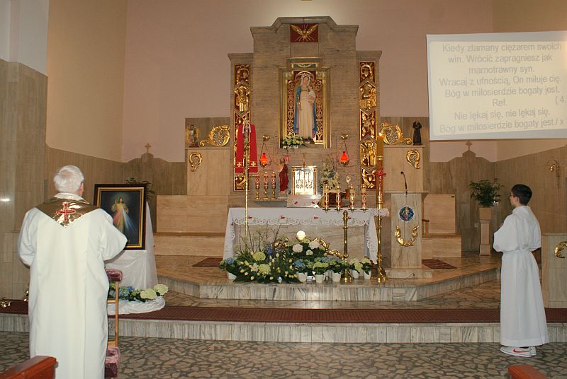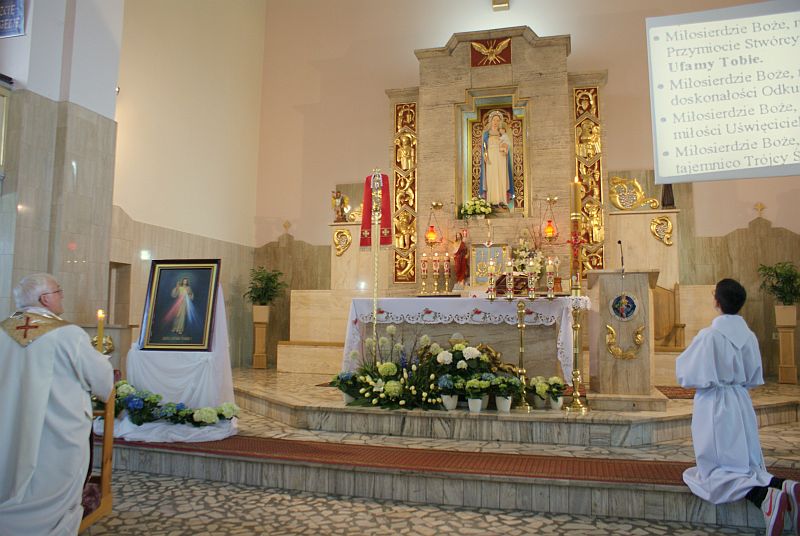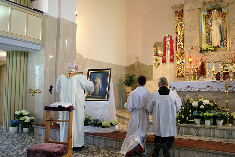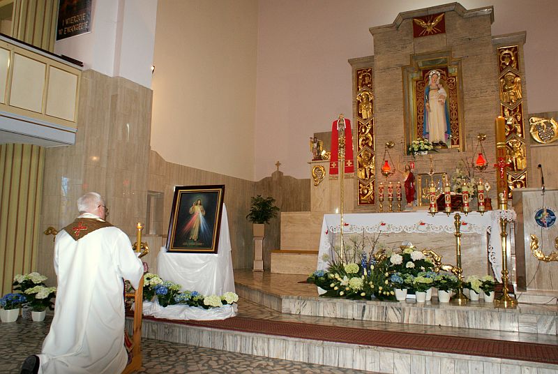 W tym dniu również uczestniczyliśmy o godz. 15,00 w naszej świątyni w uroczystym Nabożeństwie do Miłosierdzia Bożego prowadzonego przez Proboszcza ks. kan. Jerzego Kordiaka.