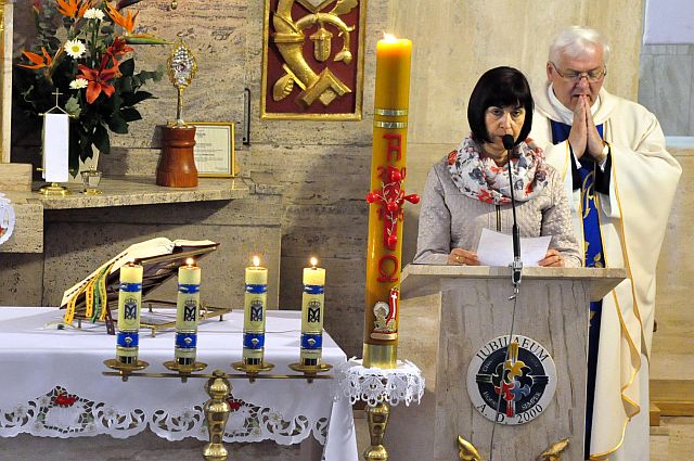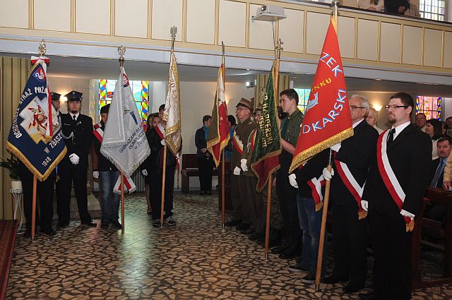 We Mszy św. uczestniczyło 11 pocztów sztandarowych, a liturgię ubogaciło czytanie lekcji i modlitwy powszechnej przez Parafialny Oddział Akcji Katolickiej.