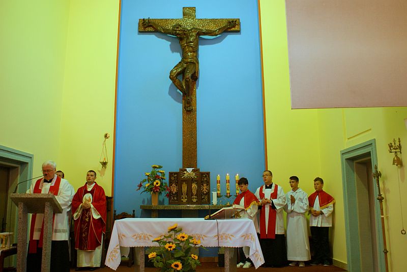 Mszę św. odpustową celebrował ks. dr Mariusz Dudka w asyście Proboszcza ks. kan. Jerzego Kordiaka. Homilię wygłosił ks. Mariusz nawiązując do św. Apostołów i ich misji, jaką powierzył im Jezus. Wskazał również na ogromną rolę miłości do Boga każdego z nas w wypełnianiu naszej codziennej życiowej misji.
