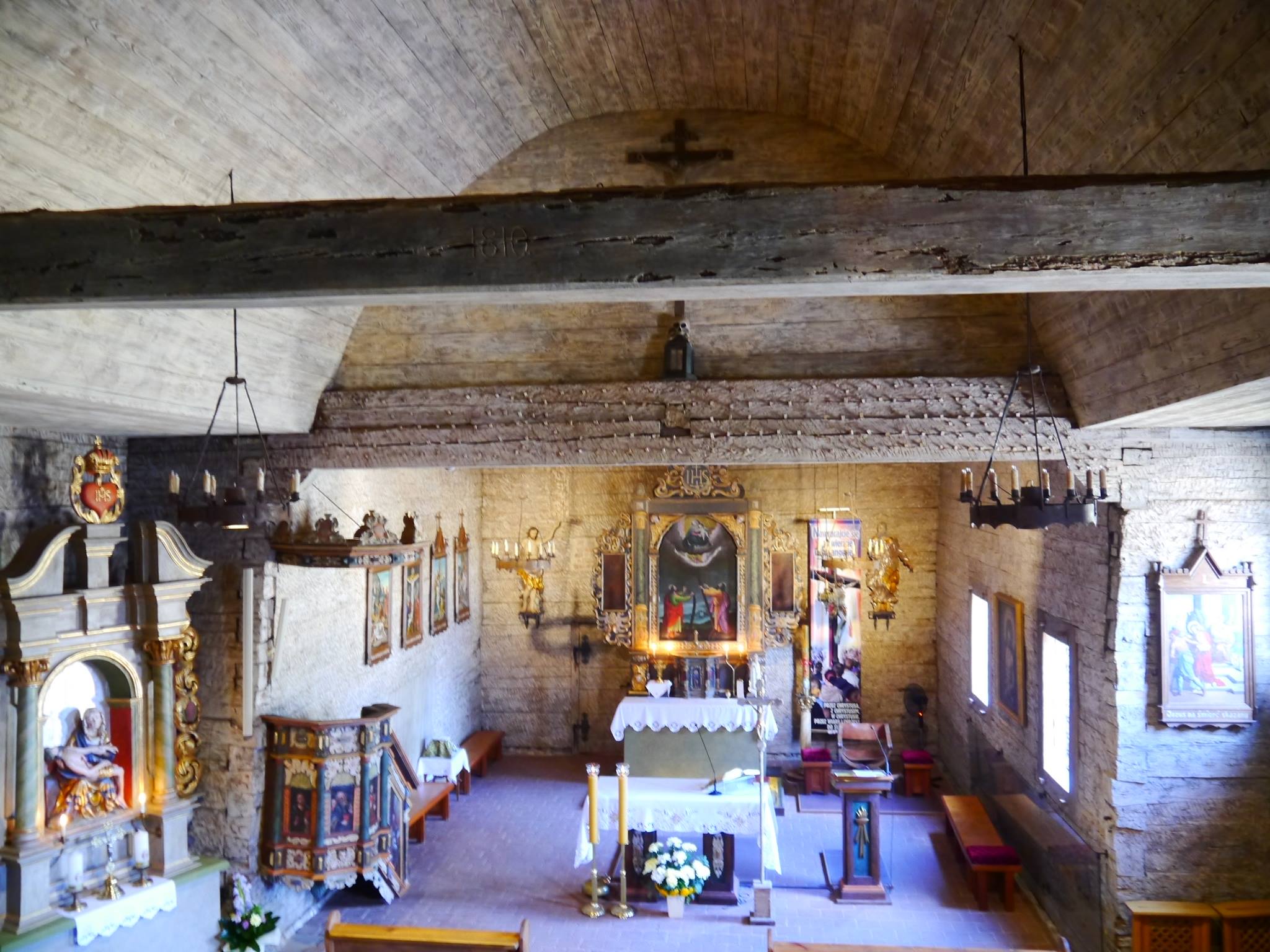 W prezbiterium umieszczono obraz Matki Bożej Królowej Świata z XVI wieku.  Obok kościoła znajdują się: