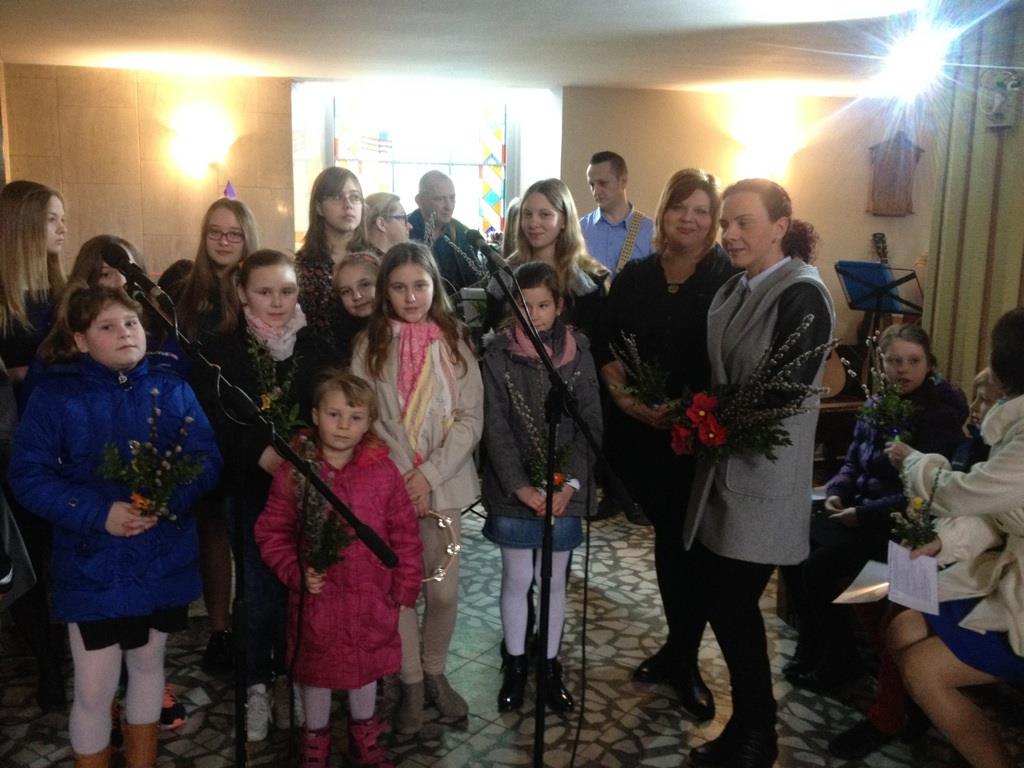 Podczas Mszy św. o godz. 9.30 dzieci naszej parafii wzięły udział w procesji z palmami wcześniej uroczyście poświęconymi przez ks. Zygmunta Zapaśnika, który przewodniczył Mszy św. Animację muzyczną sprawowały obie schole naszej parafii – dziecięca i młodzieżowa.