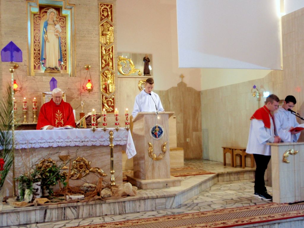 W trakcie Mszy św. służba liturgiczna ołtarza wraz z kapłanami czytała Mękę Pańską według Ewangelii św. Łukasza.