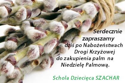 „W dniu 18 marca Schola Dziecięca SZACHAR po raz pierwszy zorganizowała w naszej parafii akcję sprzedaży palm na Niedzielę Palmową.