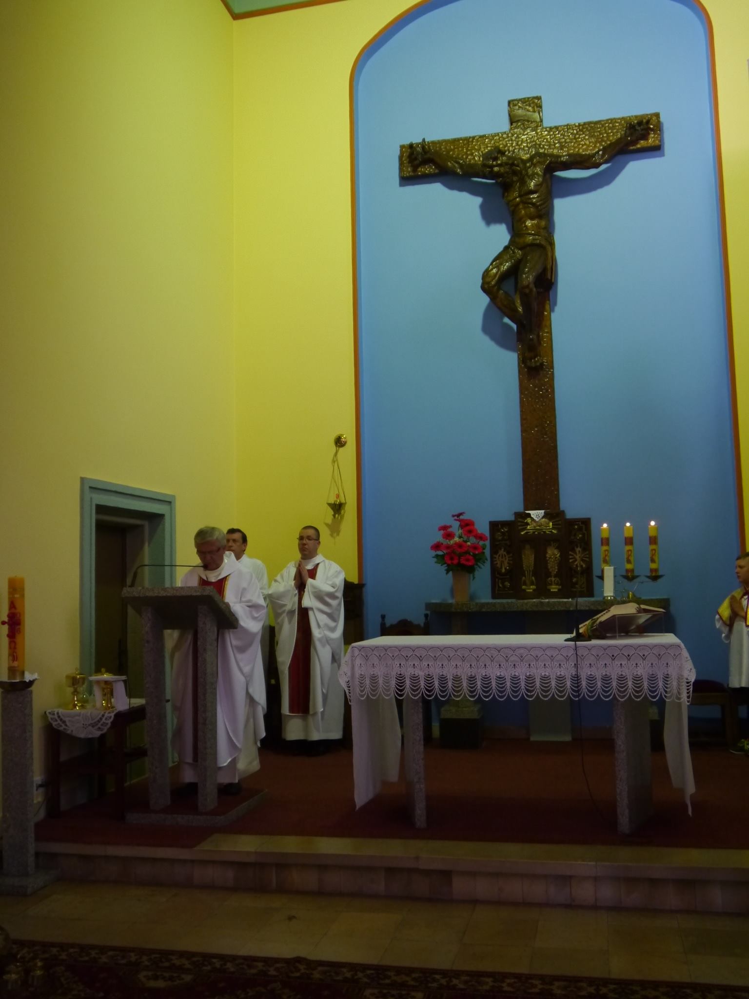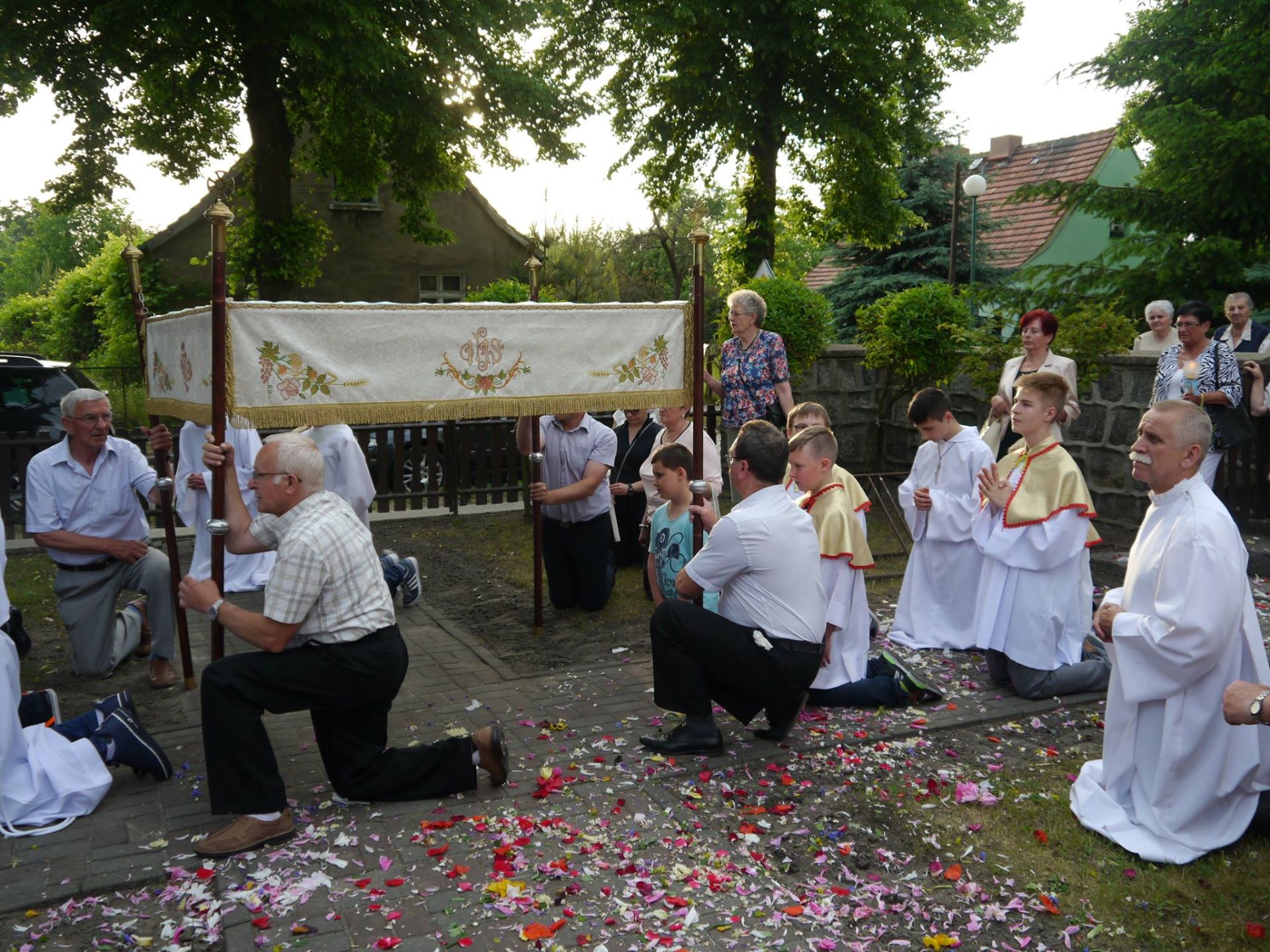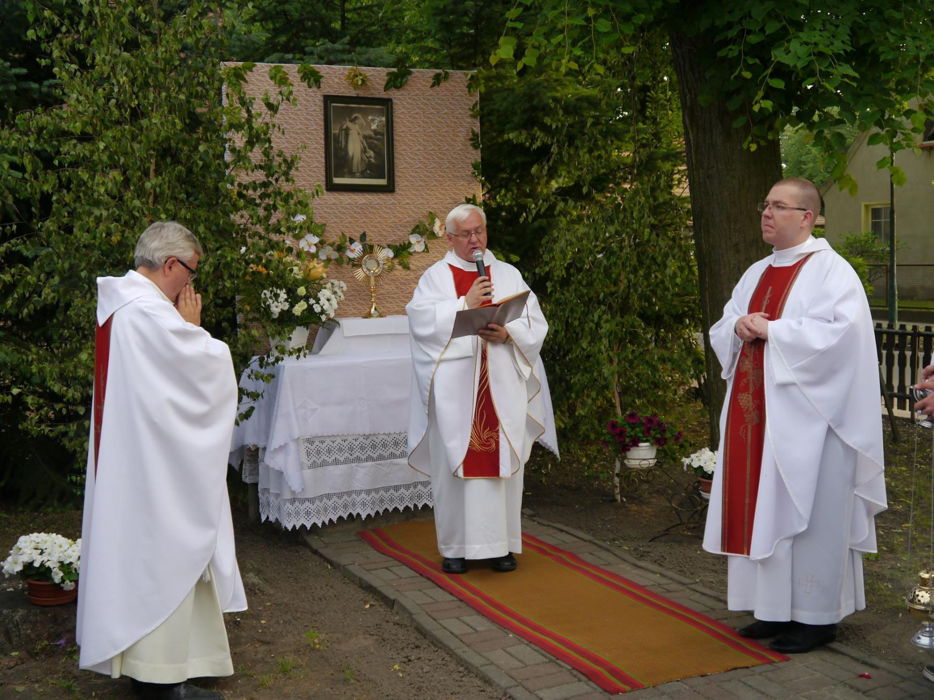 Homilię podczas Mszy św. wygłosił ks. Norbert, Pana Jezusa w Najświętszym Sakramencie kolejno nieśli ks. Norbert Lasota, ks. Józef Białasik i Proboszcz ks. kan. Jerzy Kordiak, a przed Najświętszym Sakramentem szły Panie z zapalonymi świecami i dziewczynki sypały kwiatki.