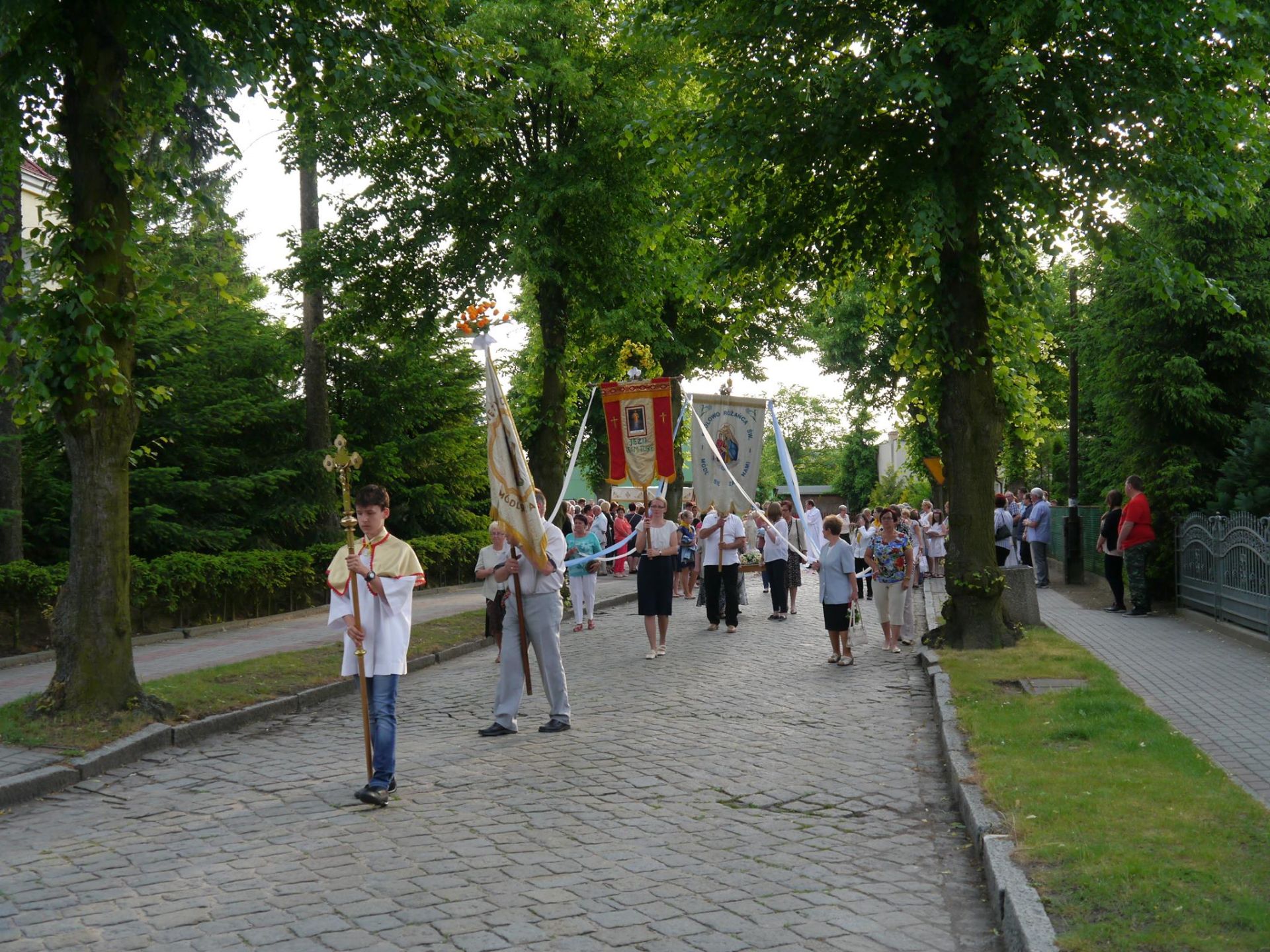 02.06.2016r. w czwartek po nabożeństwie czerwcowym i Mszy św., którą celebrował Wikariusz ks. Norbert Lasota z ks. Józefem Białasikiem naszym parafianinem i misjonarzem z Boliwii, tradycyjnie przy kościele św. Apostołów Piotra i Pawła odbyła się procesja z Najświętszym Sakramentem do czterech ołtarzy, które przygotowali mieszkańcy ulic: Kosieczyńskiej- Pl. Dworcowego, Lipowej, Kościelnej i Platanowej.