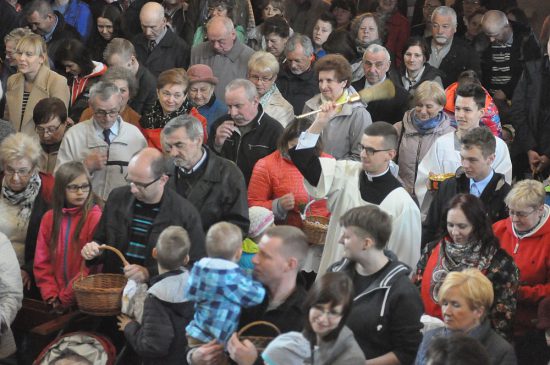 Ciszę i skupienie przerywa jedynie święcenia pokarmów, które przynoszą wierni zgodnie z naszą polską tradycją. W godzinach od 10:00 – 13:00 (o pełnej godzinie) w kościele parafialnym, w Kościele Apostołów Piotra i Pawła o godz. 11:30, a w Chlastawie o godz.14:00 ks. kleryk Mateusz święcił pokarmy wielkanocne przyniesione przez wiernych.