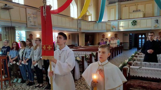 Modlitwy do 14 stacji prowadził ks. Wikariusz Norbert Lasota, rozważania – młodzież, a śpiewem ubogaciła parafialna schola młodzieżowa. Krzyż i świece do poszczególnych stacji w świątyni nieśli ministranci Daniel Kański i Igor Hansel.