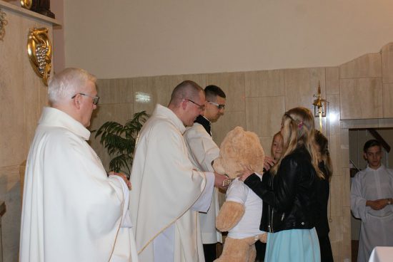 Przedstawiciele Scholi dziecięcej i młodzieżowej, grup działających w parafii i młodzieży, która przyjęła w tym roku Sakrament Bierzmowania dziękując Solenizantowi za ofiarną posługę duszpasterską w parafii życzyli zdrowia, Błogosławieństwa Bożego i opieki Matki Bożej na dalsze lata kapłaństwa.