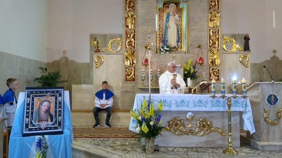 Z tej okazji w naszej parafii przed Sumą o godz. 11:00 i wystawionym wizerunkiem Matki Bożej Rokitniańskiej Cierpliwie Słuchającej celebrujący Mszę św. Proboszcz ks. kan. Jerzy Kordiak odmówił Litanię do Najświętszej Maryi Panny z Rokitna w intencji naszych parafian i całej diecezji.