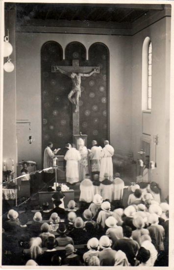 29.06.1931r. Konsekracji kościoła pw. św. Apostołów Piotra i Pawła oraz ołtarza głównego dokonuje ks. dr Franziskus Hartz (foto ze zbioru: Renate Lichtenberger)