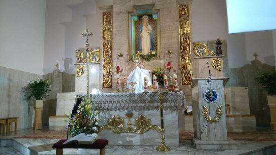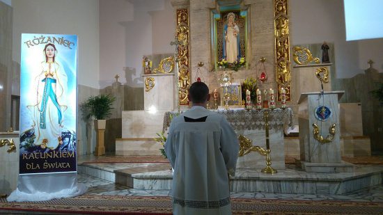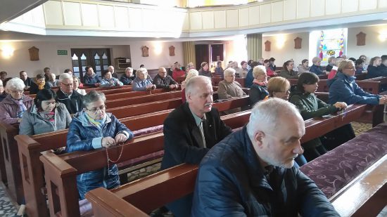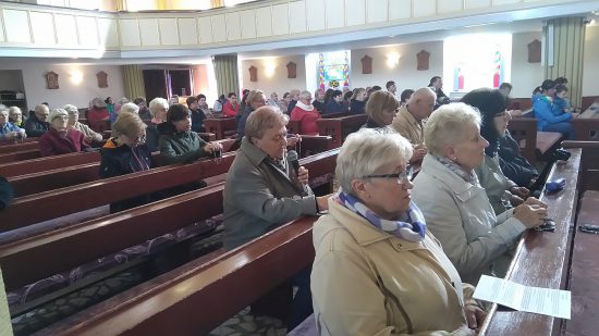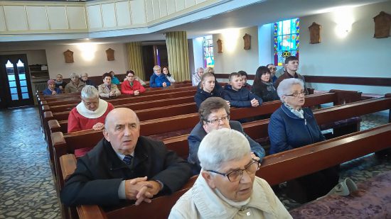 Pod przewodnictwem Wspólnoty Królowej Pokoju parafianie ( około 70 osób) odmówili cztery części Różańca św.: tajemnice radosne, światła, bolesne i chwalebne w intencji polskich rodzin, o pokój w naszym kraju i na całym świecie oraz o ochronę wiary w Europie.