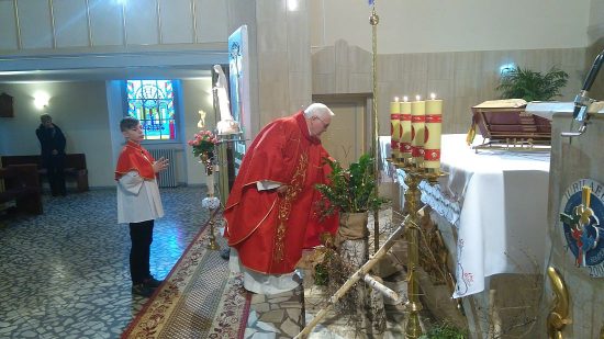 25.03.2018r. w Niedzielę Palmową czyli w Niedzielę Męki Pańskiej podczas wszystkich Mszy św. kapłani święcili przyniesione przez wiernych palmy. Główny celebrans Mszy św. wnosił do świątyni dużą gałązkę palmową, której jako pierwszej dokonał poświęcenia, a następnie wszystkie palmy przyniesione przez wiernych na Mszę św.