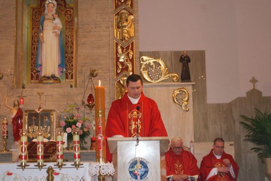 ks. Jakub Świątek wygłasza homilię podczas Mszy św. ImieninowejMuzycznie Mszę św. uświetnił chór parafialny pod kierownictwem Mariana Dobaka, schola dziecięca i młodzieżowa oraz p. organista.