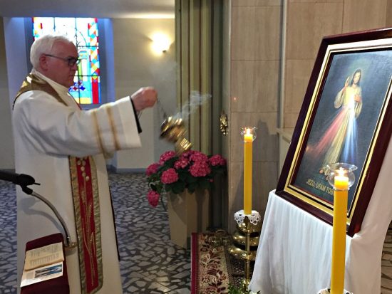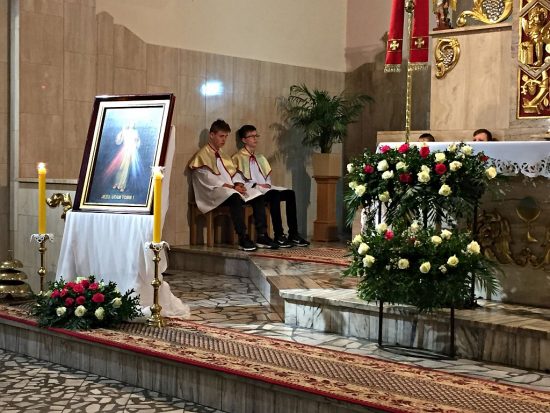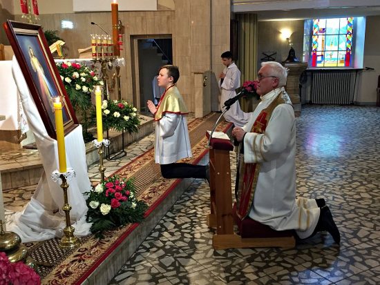 O godz. 18:00 rozpoczęło się półgodzinne Nabożeństwo do Miłosierdzia Bożego odprawione przez Proboszcza ks. kan. Jerzego Kordiaka. Podczas nabożeństwa odmówiono Koronkę i Litanię do Miłosierdzia Bożego. W szczególny sposób ks. Proboszcz zawierzał oddalonych od Pana Boga.