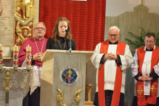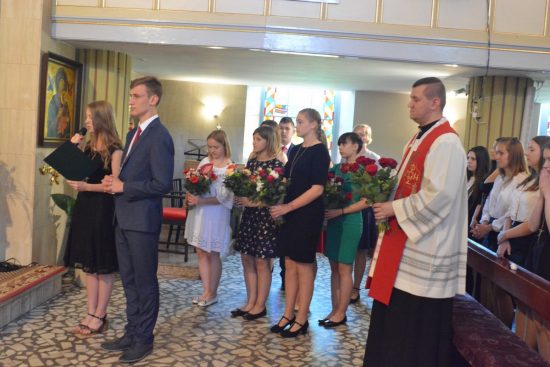 Pod koniec Liturgii przyszedł czas podziękowań. ks. Biskup, oprócz pięknych życzeń, otrzymał kwiaty. Młodzież pamiętała także o swoich rodzicach, duszpasterzach i animatorach, którzy byli i są dla nich pierwszymi świadkami wiary. Na koniec Eucharystii ks. biskup Adam Dyczkowski udzielił pasterskiego błogosławieństwa.