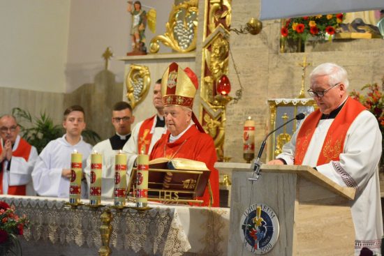 Do wszystkich zgromadzonych na Eucharystii ks. biskup Adam Dyczkowski skierował słowo homilii, w którym zachęcał do odważnego trwania przy Chrystusie i wytrwałego rozwijania, otrzymanych podczas Sakramentu, Darów Ducha Świętego. Proboszcz ks. kan. Jerzy Kordiak poprosił ks. Biskupa o udzieleniu Sakramentu Bierzmowania młodzieży, informując o ich formacji duchowej nad którą czuwał Wikariusz ks. Jakub Świątek i animatorzy.