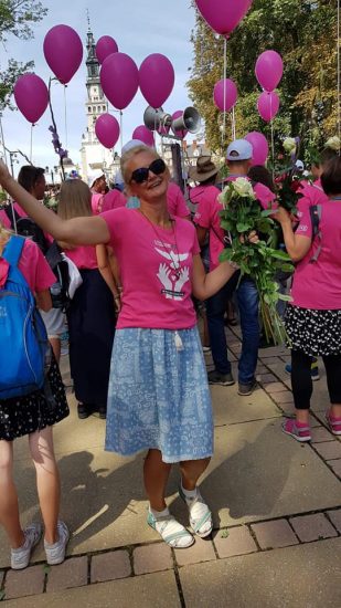 „Pielgrzymka stała się dla mnie tym ważnym czasem, kiedy nie sposób ukryć się w swojej własnej strefie komfortu, kiedy Maryja zabiera maski, pod którymi chowam swoje prawdziwe oblicze każdego dnia. W drodze krok po kroku naucza serce czym jest pokora i jak dawać coś z siebie innym, pomimo własnego zmęczenia. Pan Jezus pokazał mi, że właśnie to jest istotą wolności, jaką w Nim mamy. Być dla drugiego człowieka to siła Miłości i tego doświadczyłam w pielgrzymkowej wspólnocie. A On zaprowadził mnie troszkę obolałą, ale dzięki temu autentyczną i szeroko uśmiechniętą przed jasnogórskie oblicze Matki. I za to Jemu chwała!”