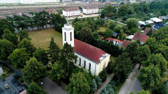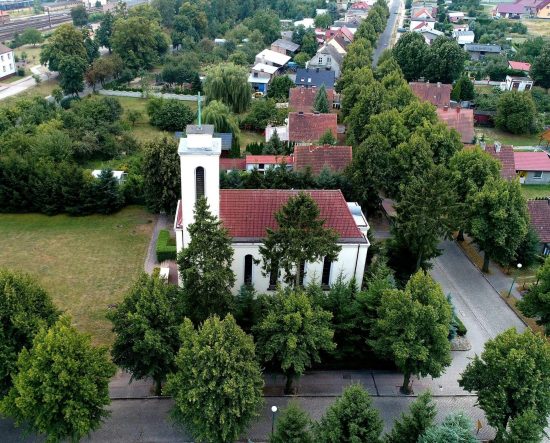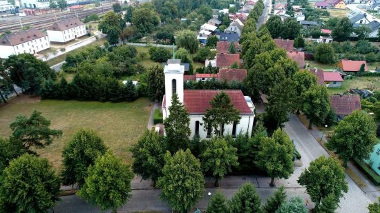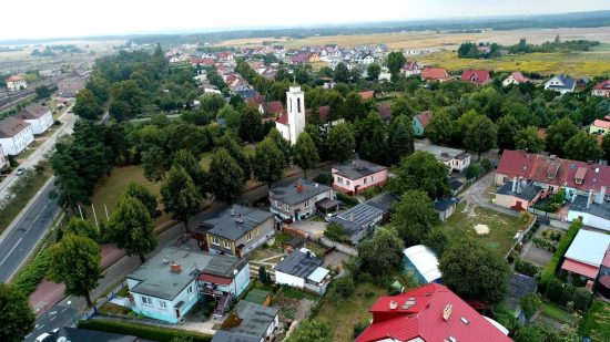 Foto kościoła pw. św. Apostołów Piotra i Pawła z drona