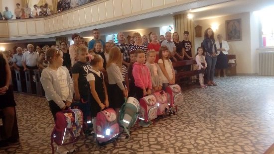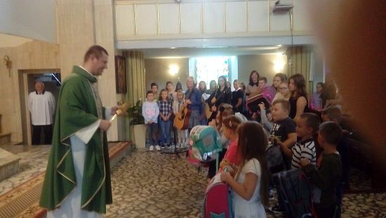 09.09.2018r. podczas Mszy św. o godz. 9:30, tradycyjnie jak co roku, zostały poświęcone tornistry uczniów klas I rozpoczynających naukę  w roku szkolnym 2018/2019.  Poświęcenia dokonał Wikariusz ks. Jakub Świątek.