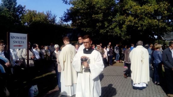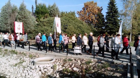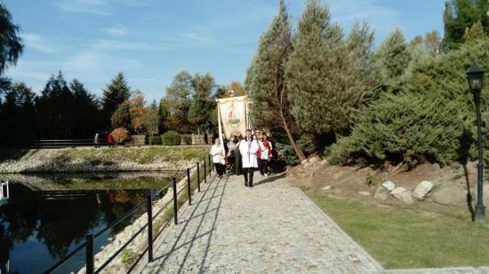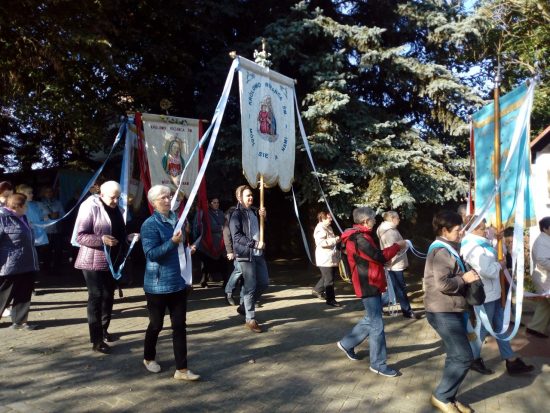 „Coroczna Pielgrzymka Róż Żywego Różańca odbyła się 06.10.2018r. Uczestniczyło tylko 37 osób. Uroczystości rozpoczęły się o godz. 10:00 Różańcem świętym prowadzonym przez parafian ze Świebodzina w procesji dróżkami w ogrodach Rokitniańskich, w której uczestniczyły wszystkie sztandary i feletrony oraz wierni. Wśród sztandarów niesiono także sztandar różańcowy z naszej parafii.