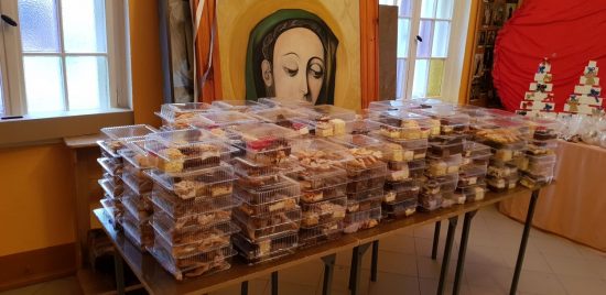 Nasi parafianie mogli nabyć pyszne domowe ciasta pieczone przez mamy i babcie naszych scholkowych dzieci. Cieszyły się one jak zwykle największym zainteresowaniem. Obok ciast można było nabyć piękne ozdoby świąteczne przygotowane przez darczyńców.