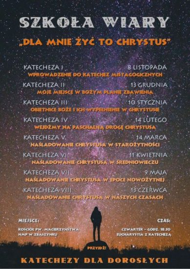 Zapraszamy do zapoznania się poniżej z proponowanymi tematami kolejnych katechez oraz uczestnictwa w nich w II czwartek miesiąca na Mszy św. o godz. 18.30.