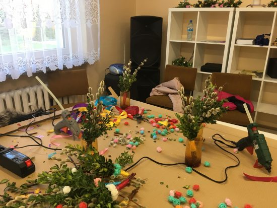 Dnia 12 kwietnia po Drogach Krzyżowych w naszej parafii Schola Dziecięca Szachar sprzedawała palmy na Niedziele Palmową. Bukiety z palm zostały przygotowane przez