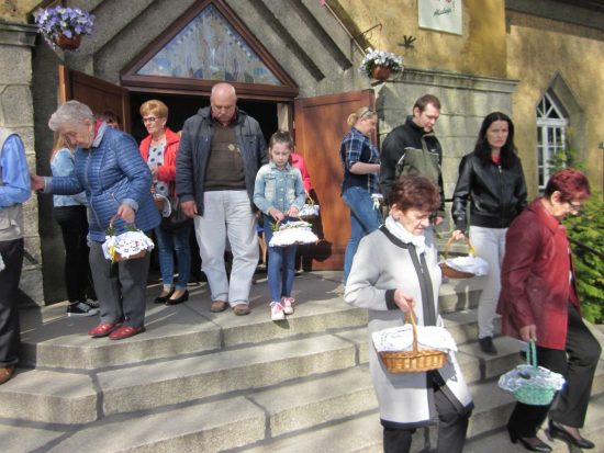 Zgodnie z naszym polskim zwyczajem mieszkańcy naszej parafii przybywali do kościołów: parafialnego, św. Apostołów Piotra i Pawła w Zbąszynku oraz pw. Narodzenia NMP w Chlastwie, aby poświęcić pokarmy, które będą spożywane podczas Wielkanocnego Śniadania. Pokarmy święcili nasi kapłani.