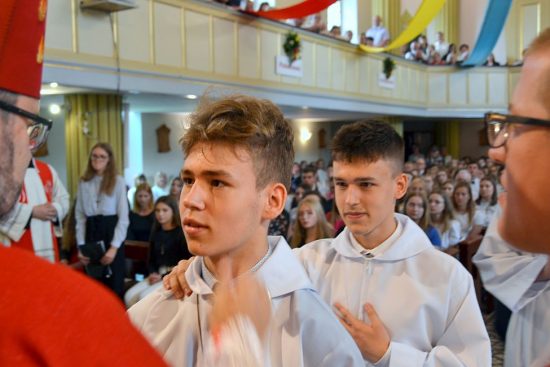 Ks. Biskup podczas homilii apelował do młodzieży, by byli odważnymi świadkami Chrystusa przez całe życie i dawali świadectwo wiary, nie wstydząc się, że są Jego uczniami.
