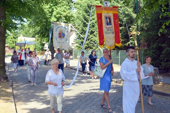 Patronalne święto kościoła filialnego pw. Św. Apostołów Piotra i Pawła 29.06.2019 r. o godz. 10:30 uroczystość odpustowa rozpoczęła się półgodzinną adoracją Najświętszego Sakramentu. Następnie Litanię do św. Apostołów Piotra i Pawła przed ich obrazem odczytał nasz Wikariusz ks. Jakub Świątek. Po modlitwie odbyła się procesja z Najświętszym Sakramentem wokół kościoła.