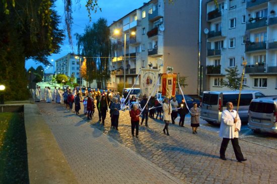 Przed Mszą św., po zakończonym różańcu, rozpoczęła się procesja wokół kościoła parafialnego z Najświętszym Sakramentem zakończona błogosławieństwem.