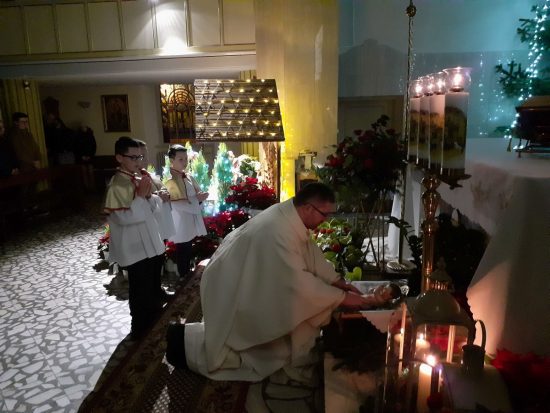 Na zakończenie Pasterek nasi Kapłani w łączności z Jezusem Nowonarodzonym złożyli parafianom życzenia świąteczne.
