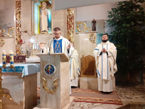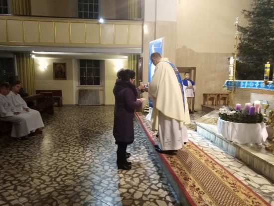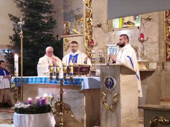 19.12.2019 r. obchodziliśmy Imieniny i 40 rocznicę urodzin naszego Rezydenta ks. dr Dariusza Wołczeckiego. Na początku Mszy św. o godz. 17:00 Matki z Róży Macierzyństwa NMP zapaliły świecę adwentową. Solenizant ks. Dariusz przewodniczył Eucharystii, którą sprawował w koncelebrze z Proboszczem ks. kan. Jerzym Kordiakiem i Wikariuszem ks. Jakubem Świątkiem. Homilię wygłosił ks.Jakub, w której nawiązał do nazirejczyków Samsona, Samuela i Jana Chrzciciela. Intencją Mszy św. zamówionej przez Parafialny Żywy Różaniec było dziękczynienie za otrzymane łaski oraz prośba o Boże Błogosławieństwo i macierzyńską opiekę Matki Bożej na dalsze lata kapłaństwa naszego solenizanta i jubilata.