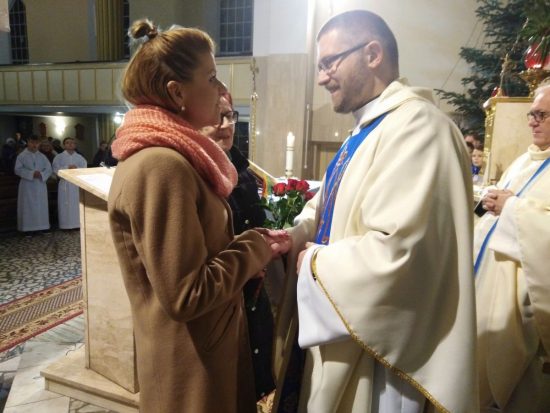 Pod koniec Mszy św. życzenia solenizantowi składały dzieci ze scholi, przedstawiciele grup parafialnych, chóru, członkowie „Margaretki” modlących się za ks. Dariusza i parafianie z Chlastawy, a na zakończenie ks. Dariusz podziękował wszystkim przybyłym parafianom za modlitwę w Jego intencji i złożone życzenia.