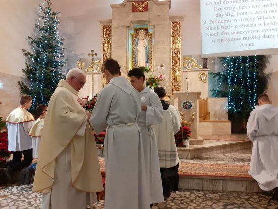 31.12.2019 r. o godz. 17:00 Proboszcz Parafii ks. kan. Jerzy Kordiak celebrował uroczystą Mszę św. dziękczynno-błagalną na zakończenie starego roku 2019 roku. W trakcie Mszy św. ks. Proboszcz tradycyjnie dokonał podsumowania wydarzeń w parafii w mijającym roku w zakresie działalności duszpasterskiej, Caritasu, przeprowadzonych remontów i zakupów.