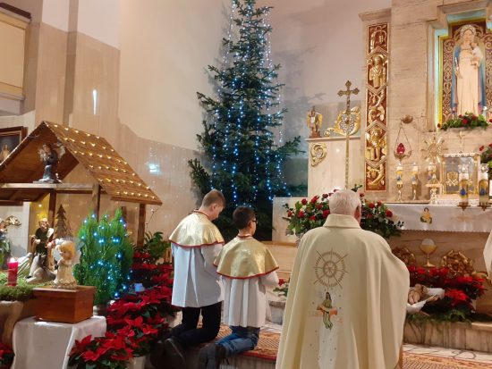 Na zakończenie Mszy św. przed wystawionym Najświętszym Sakramentem odbyło się Nabożeństwo dziękczynno–przebłagalne, jako dziękczynienie Panu Bogu za otrzymane łaski w 2019r. z prośbą o Boże Błogosławieństwo i opiekę nad parafią w nadchodzącym 2020 r.