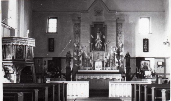 1984 r. (po prawej) prezbiterium z nową nadstawą ołtarza (foto: Zdzisław Nowak)opracowanie: Jerzy Ganecki