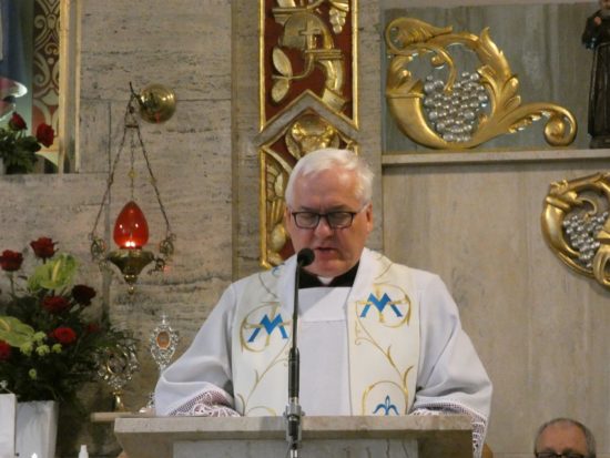 Ks. Zdzisław wygłosił homilię na temat Maryi naszej niebieskiej Matki i patronki naszej parafii w Zbąszynku. Na zakończenie homilii ks. Zdzisław wyśpiewał piękna pieśń na cześć Maryi.